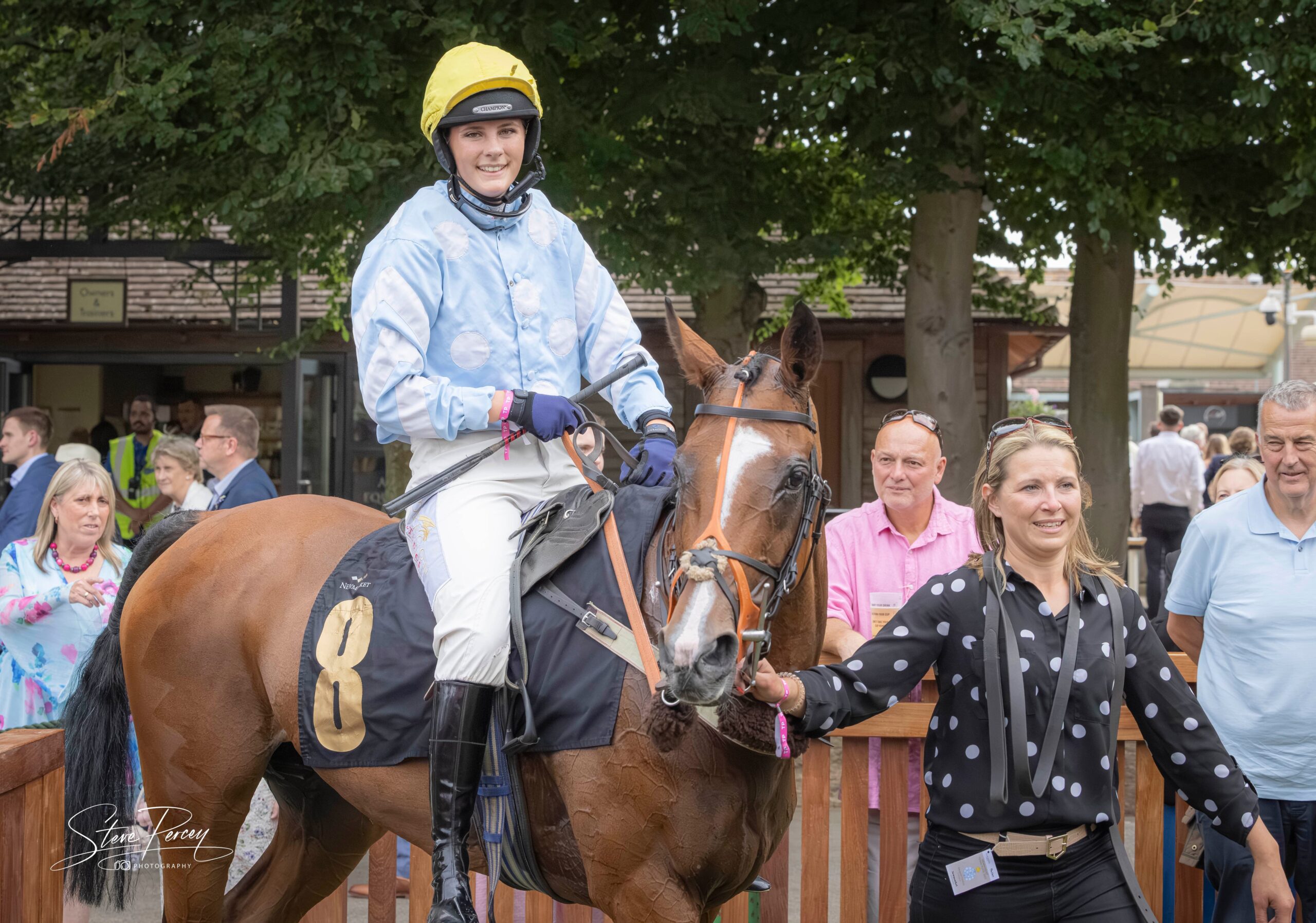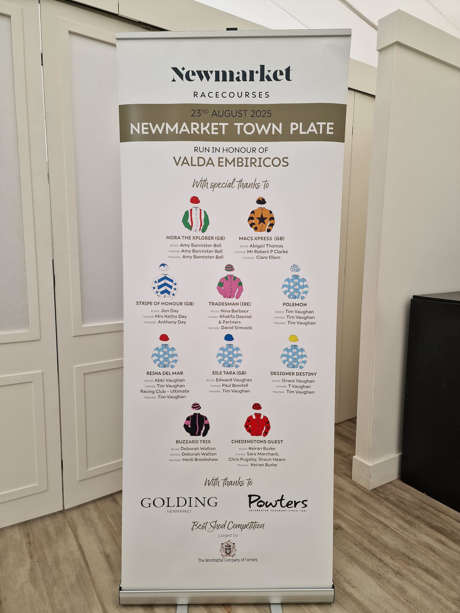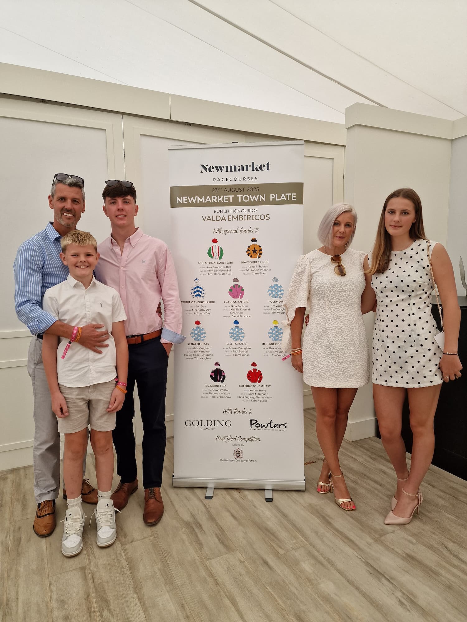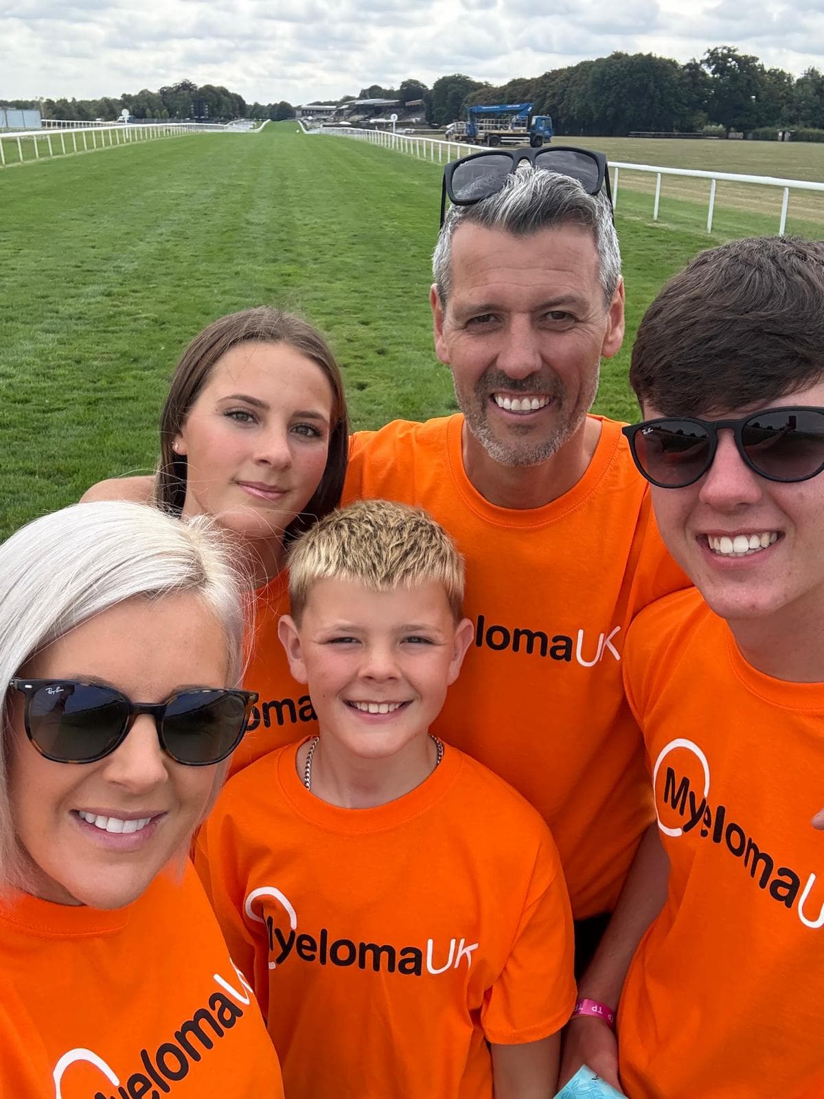 The Vaughan family, including Racehorse Trainer Tim Vaughan, wife Abbi and son/daughter Ed and Grace (cheered on at the sidelines by youngest son, Henry), took part in the prestigious Newmarket Town Plate Horse Race in August 2025, whilst raising money for the blood cancer charity, Myeloma UK.